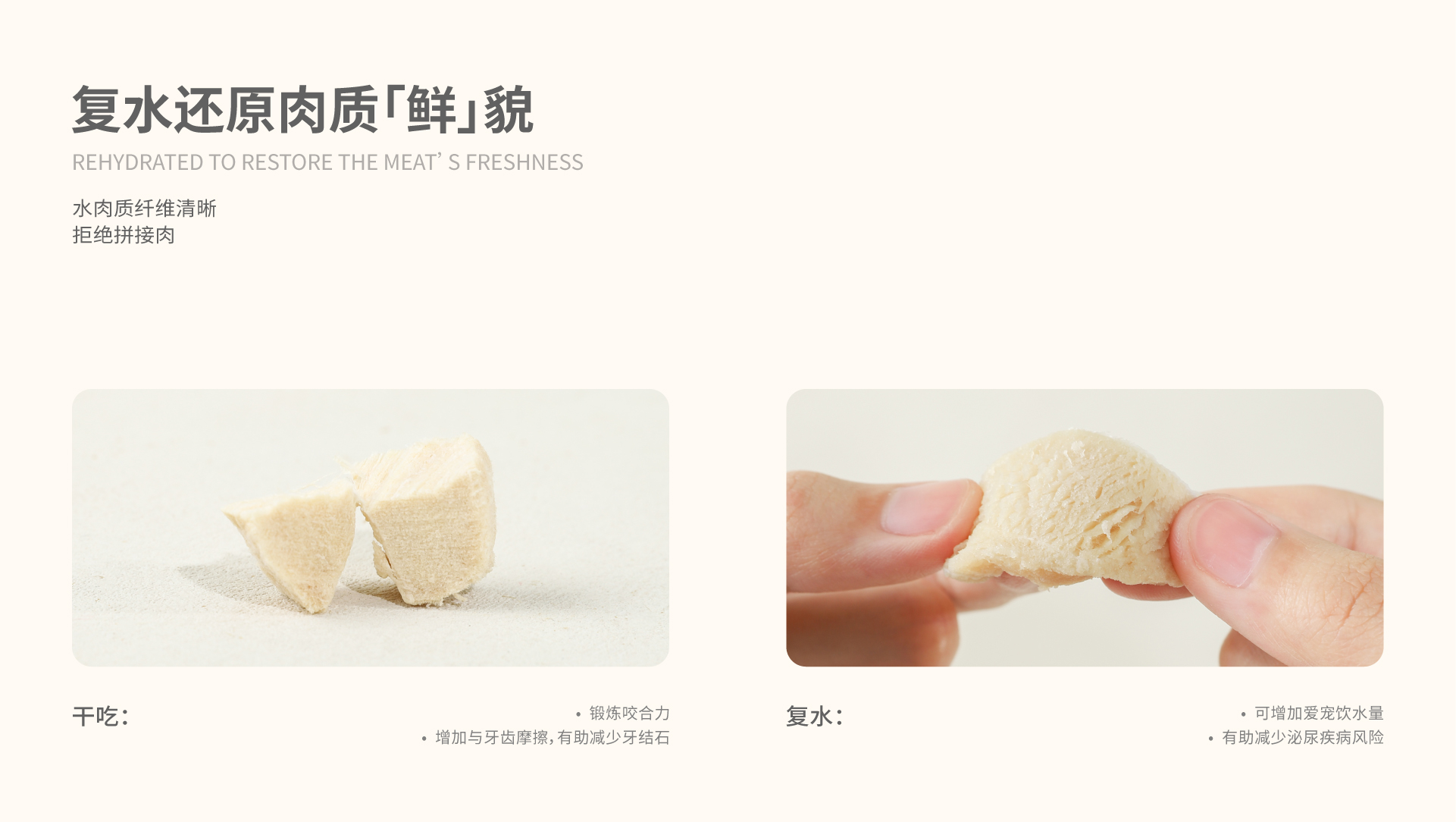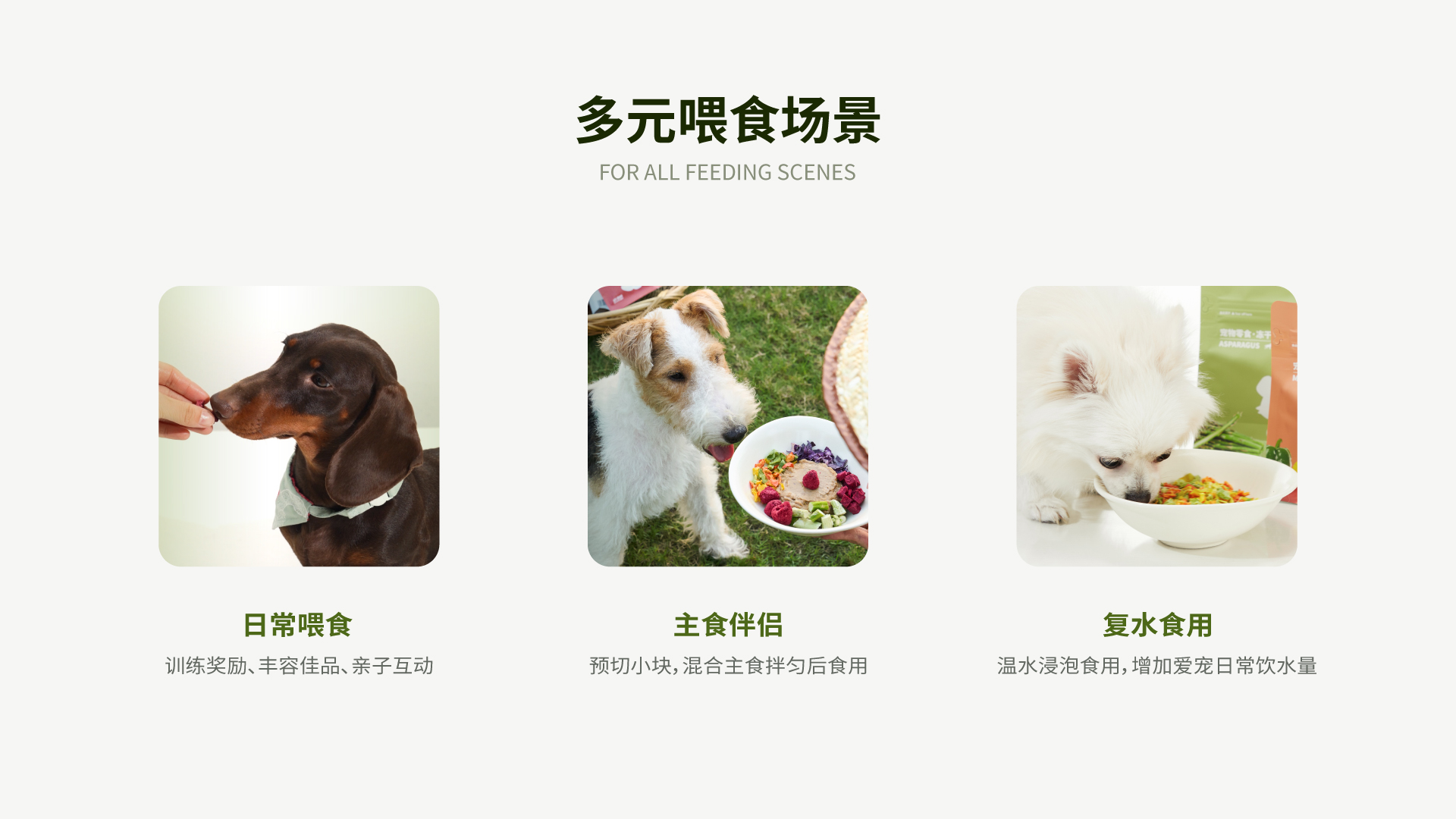 直接投喂即可,复水投喂更佳。不再担心营养不全,无需额外添加营养剂和自制肉类。